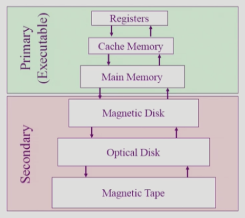 : CPU가 직접 접근하여 처리가능, 휘발성, 바이트 단위 접근 가능Secondary