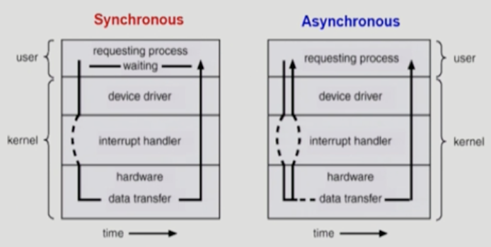 *두 경우 모두 I/O완료는 인터럽트로 알려줌
